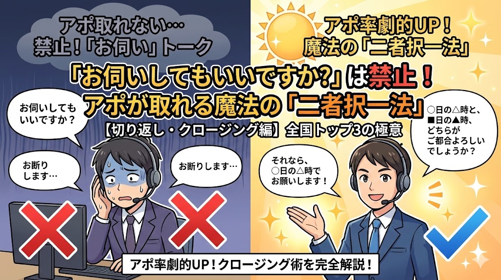 次回は、【切り返し・クロージング編】として、アポを確定させるための「悪魔的クロージング術」と「魔法の切り返し」について解説します。